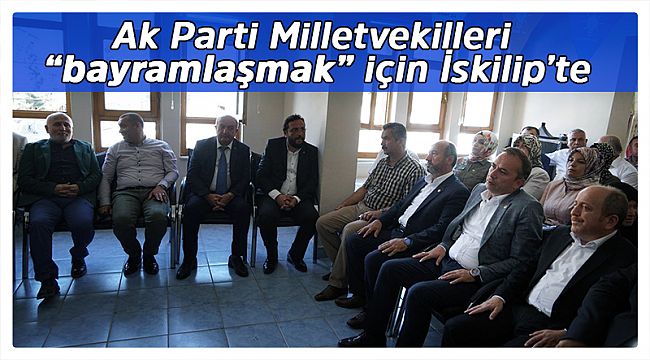 Ak Parti Çorum Milletvekilleri Ahmet Sami Ceylan, Oğuzhan Kaya, Erol Kavuncu, Ak Parti İl Başkanı Mehmet Karadağ ve Çorum İl Genel Meclisi Başkanı Halil İbrahim Kaya kurban bayramının üçüncü günü olan bugün İskilip'e gelerek hem partililerle bayramlaştılar hemde 24 Temmuz seçimlerinde verilen destek için İskilip'e teşekkür ettiler. Ak Parti İskilip İlçe Başkanlığında düzenlenen bayramlaşmaya Ak Parti İlçe Başkanı Mustafa Lek, İskilip Belediye Başkanı Recep Çatma, İl Genel Meclisi Üyesi Yusuf Kaya ve partililer katıldılar.