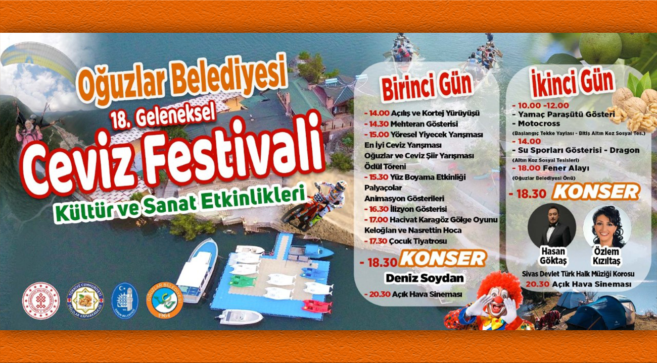 Dünyaca ünlü, coğrafi işaretli Oğuzlar cevizinin tanıtımı için geleneksel hale gelen festivalin bu yıl 18.si düzenlenecek. Kültür, sanat etkinlikleri, sportif faaliyetlerle dolu dolu geçecek bir festival gerçekleşeceğini dile getiren Oğuzlar Belediye Başkanı Muzaffer Yıldırım, "Oğuzlar cevizimizin hasadının ardından gelenekselleşip şenlikler ile geçen festivalimiz bu yıl hem cevizimizin tanıtımını hem de ilçemizin doğal güzelliklerinin tanıtımını amaçlıyor. Yamaç paraşütü, motocross yarışları, dragon yarışları ve bot yarışları ile doğa sporlarıyla dolu dolu geçecek festivalimize herkesi bekleriz." dedi.