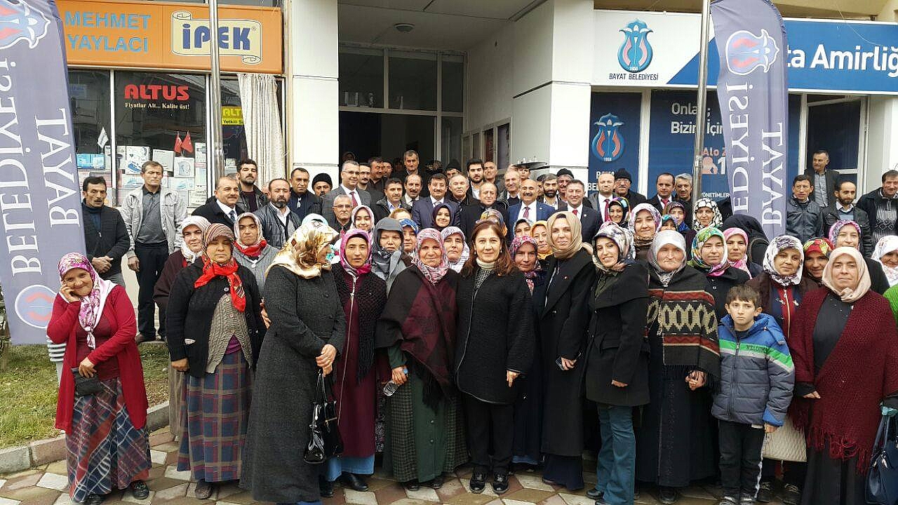 Ak Parti Çorum İl Başkanı Mehmet Karadağ ve AK Parti Çorum Milletvekili Sağlık, Aile, Çalışma ve Sosyal İşler Komisyonu ve Parlementolararası Birlik Türk Grubu Üyesi Lütfiye İlksen Ceritoğlu Kurt, İlçe Koordinatörleri, İl Yönetim Kurulu Üyeleri,Kadın Kolları Başkanı Meryem Demir, Gençlik Kolları Başkanı Burak Köse ile Bayat'ta İlçe teşkilatı, yöneticileri ve kuruluşundan günümüze partililerle bir araya geldi. Toplantıda konuşan Karadağ, ilçedeki yatırımları değerlendirerek projeler hakkında bilgi verdi. Bayat ilçesine öncelik verdiklerini dile getiren Karadağ, "Bayat'ın köyleri berbat durumdaydı. Onun için Bayat'ın köylerine öncelik verdik. Başta köy yollarının sorunlarını çözmek için çalışmalar başlattık" dedi.