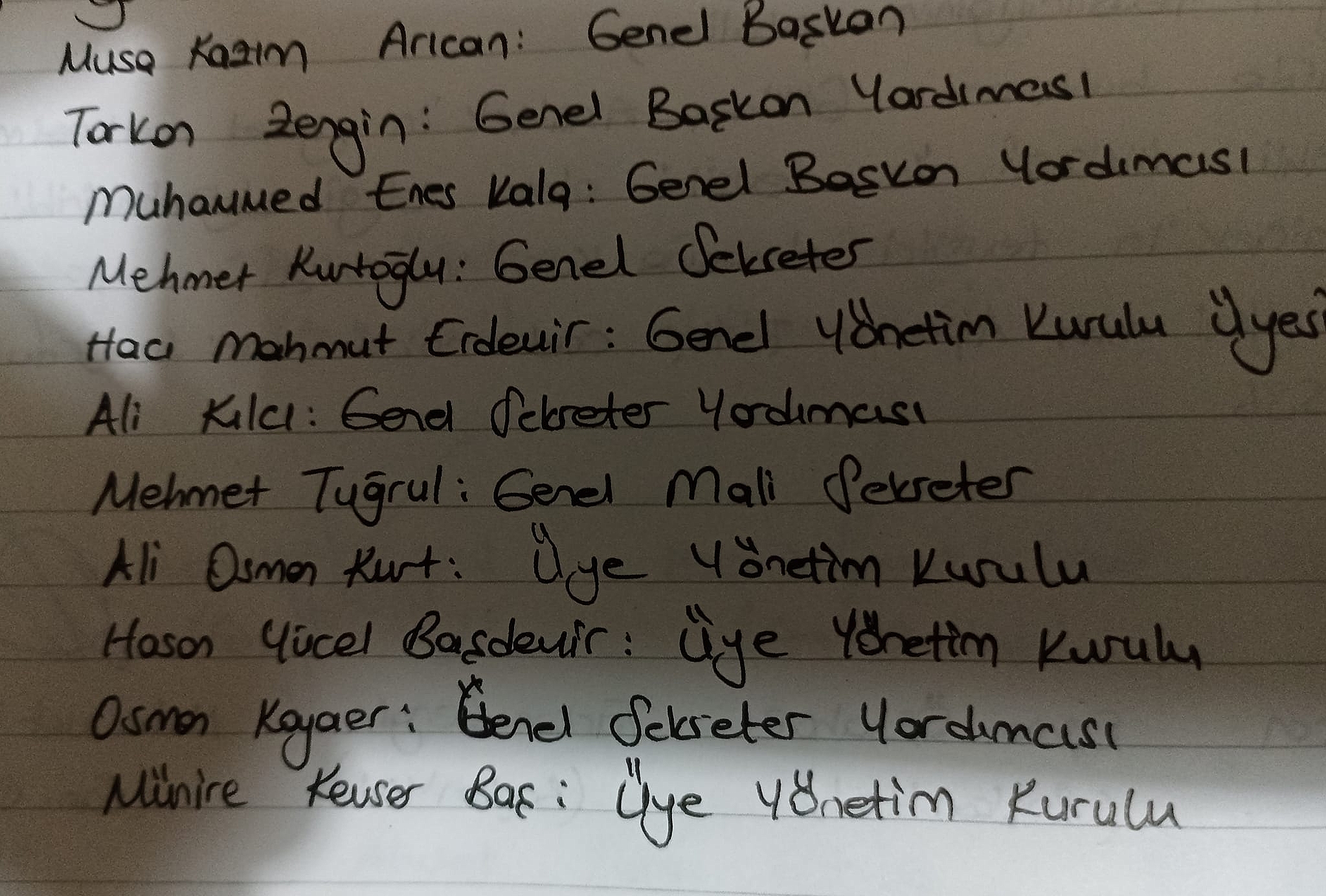 Türkiye Yazarlar Birliği yeni yönetimi belirlendi. Prof. Dr. Musa Kazım Arıcan Genel Başkan seçildi. M. Enes Kala ve Tarkan Zengin Gen. Bşk Yardımcısı, ben de Genel Sekreterliğe seçildim. Mali sekreter Mehmet Tuğrul, Genel Sek. Yardımcısı Ali Kılıcı ve Osman Kayaer seçildi. Yön. Kur.üyeliklerine Prof. Dr. Ali Osman Kurt, Prof. Dr. Hasan Yücel Başdemir, Prof. Dr. Münire Kevser Baş ve Hacı Mahmur Erdemir seçildiler.