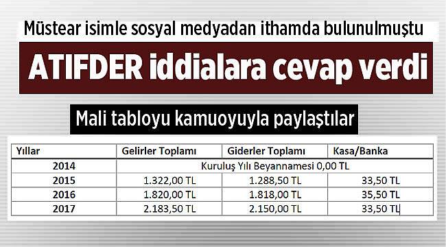 ATIFDER Başkanı Muhittin Telli imzalı yapılan yazılı açıklamada derneğin mali tablosu yayınlandı. Yapılan açıklama şöyle: