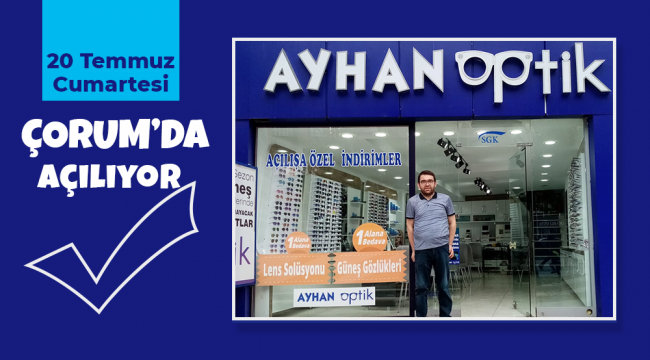 İşletmeciliğini İskilipli Optisyen Ayhan Hallı’nın yaptığı Ayhan Optik 20 Temmuz Cumartesi günü saat 14.00’de Gazi Caddesi Azap Ahmet Sok.No: 51/A adresinde hizmete giriyor.