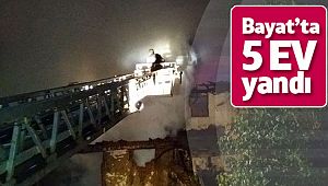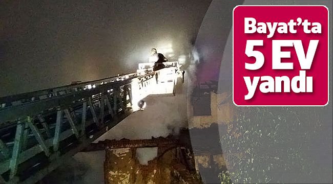 Dün gece Bayat'ın Derekutuğun köyünde çıkan yangında 5 ev tamamen yanarak kullanılmaz hale geldi. Yangına Bayat itfaiyesiyle birlikte İskilip itfaiyesive İskilip Orman İşletmesine bağlı yangın söndürme araçlarıda katıldı. Yangınla ilgili hasar tespit çalışmaları devam ediyor.