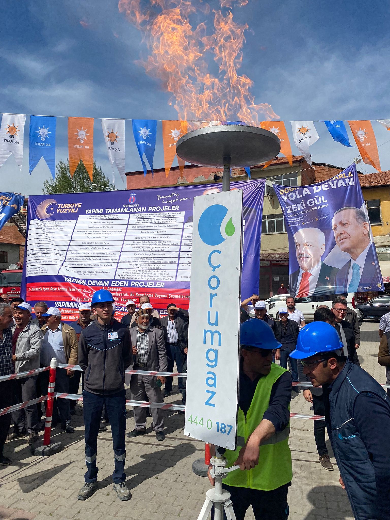 Ahlatcı, Bayat ve Uğurludağ ilçelerine doğalgaz getiremezsiniz diyenlere inat "Biz ne söz verdiysek onu yerine getiririz" diyerek doğalgaz meşalesini yaktı.