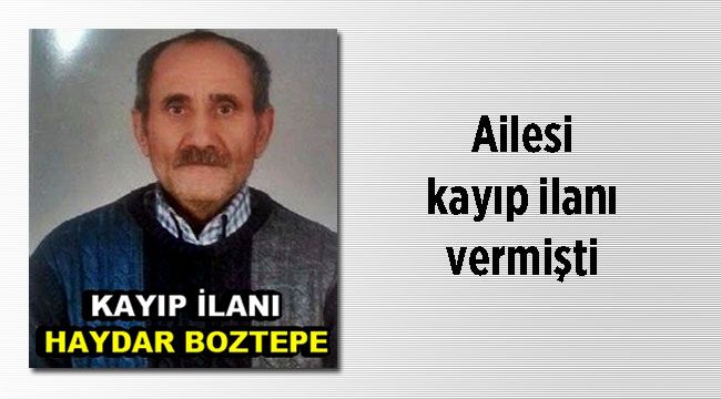 Edinilen bilgilere göre, 16 Şubat Perşembe günü Bahçelievler Mahallesi’ndeki ikametinden ayrılan ve bir daha kendisinden haber alınamayan 56 yaşındaki Haydar Boztepe’nin bulunması için seferber olan ailesi Emniyet ve Jandarma güçlerine başvurmuş bulunması için şehrin bazı bölgelerine de kayıp şahsın fotoğraflarını asmıştı.