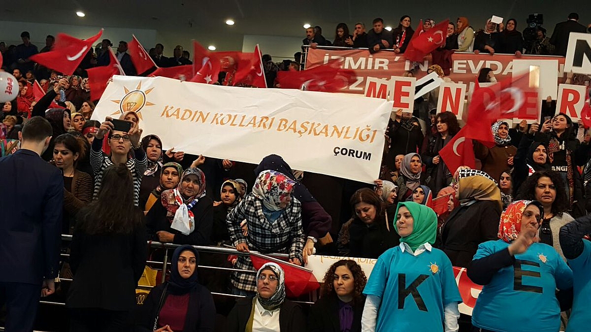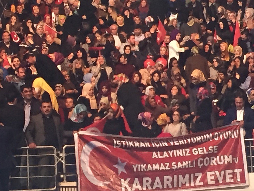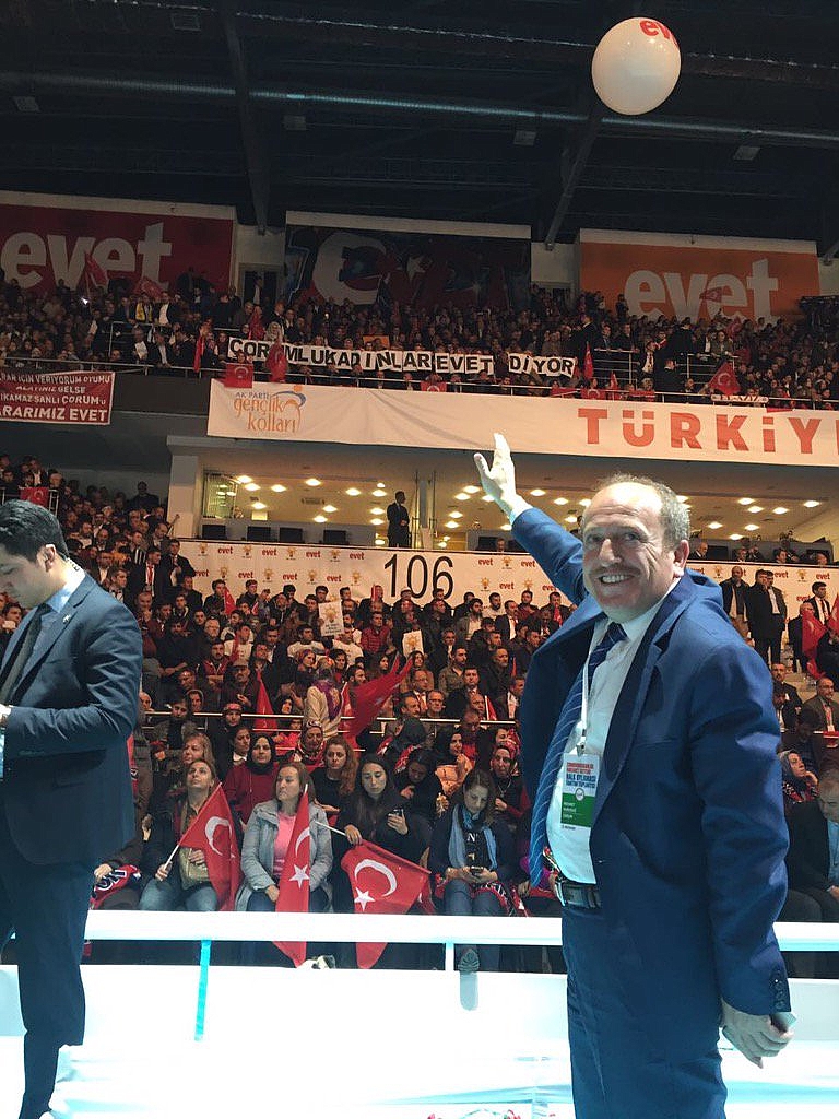 Çorum Teşkilatlarının uyumu birlik ve beraberlik içinde hareket etmenin bir meyvesini daha gösterdi. Cuma gecesi saat 02.00 da 60 araç ile Çorum’dan tüm il ve ilçe teşkilatlarıyla Ankara da yapılacak toplantıya hareket ettiler. Sabah saatlerinden itibaren Ankara Arena'yı dolduran Çorum teşkilatının heyecanı ve coşkusu Arena Salonuna yansıdı. Başbakan Yıldırım’ın; “Biz dilden değil, gönülden, kalpten 'Evet' istiyoruz “ şeklindeki sözlerine cevaben Çorum teşkilatlarının hazırladığı ÇORUMLU KADINLAR EVET DİYOR”, “İstikrar İçin Veriyorum Oyumu, Alayınız Gelse Yıkamaz Şanlı Çorum’u KARARIMIZ EVET” pankartları ile Çorum’un kararının evet olduğunu tüm Türkiye’ye duyurdu.