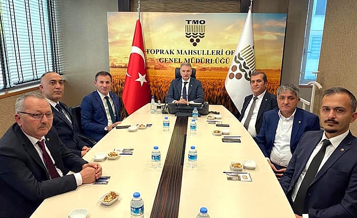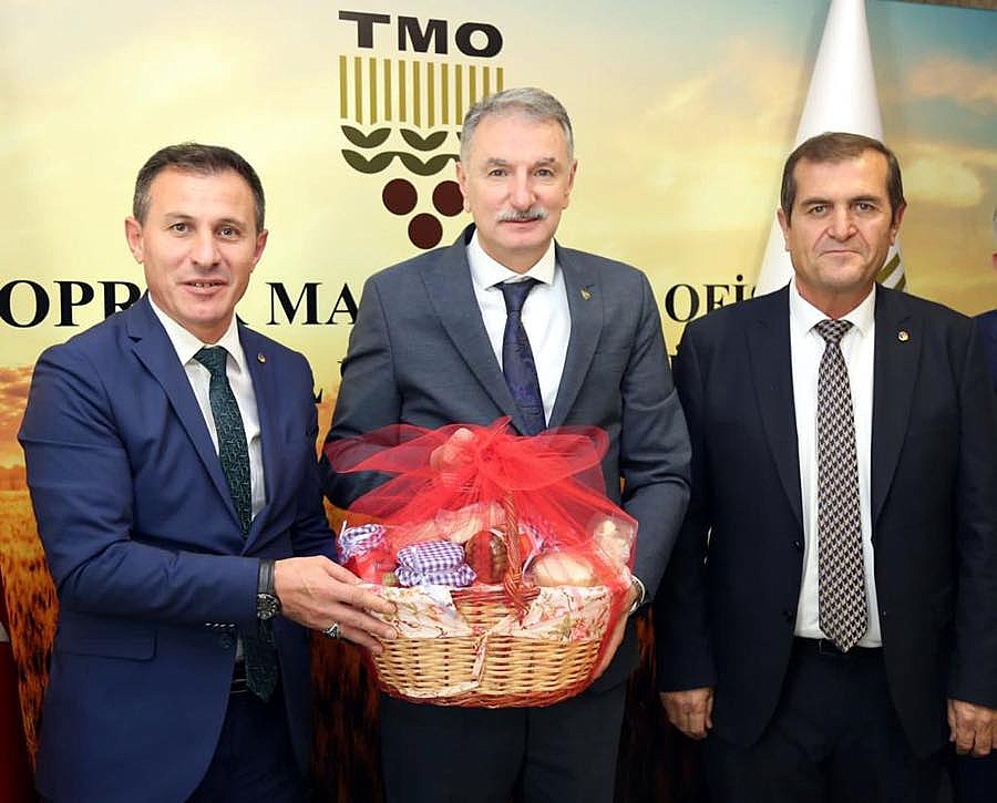 Ticaret Borsası Meclis Başkanı Yılmaz Kaya, Yönetim Kurulu Başkanı Naki Özkubat, Toprak Mahsulleri Ofisi Yönetim Kurulu Başkanı ve Genel Müdürü Ahmet Güldal’ı makamında ziyaret ettiler.