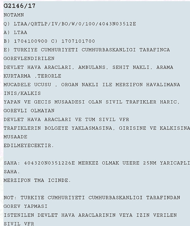 Cumhurbaşkanı Recep Tayyip Erdoğan'ın Çorum ziyareti nedeniyle hava sahası izinsiz uçuşlara kapatıldı.Konuyla ilgili yapılan açıklama aşağıdadır.