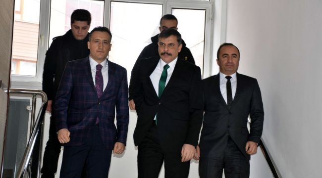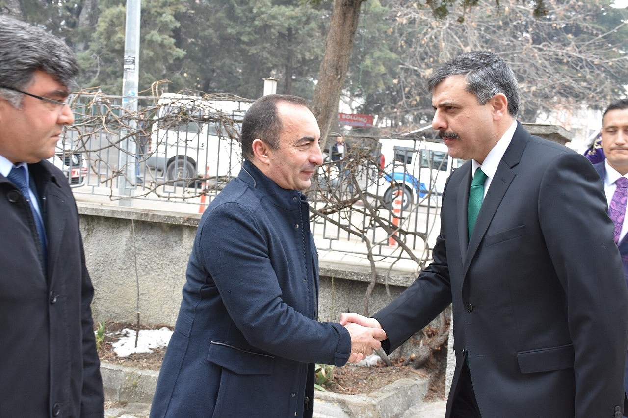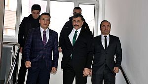 Bir dizi ziyaretler için İskilip'e gelen Mustafa Çiftçi beraberindekilerle birlikte incelemelerde bulunuyor.