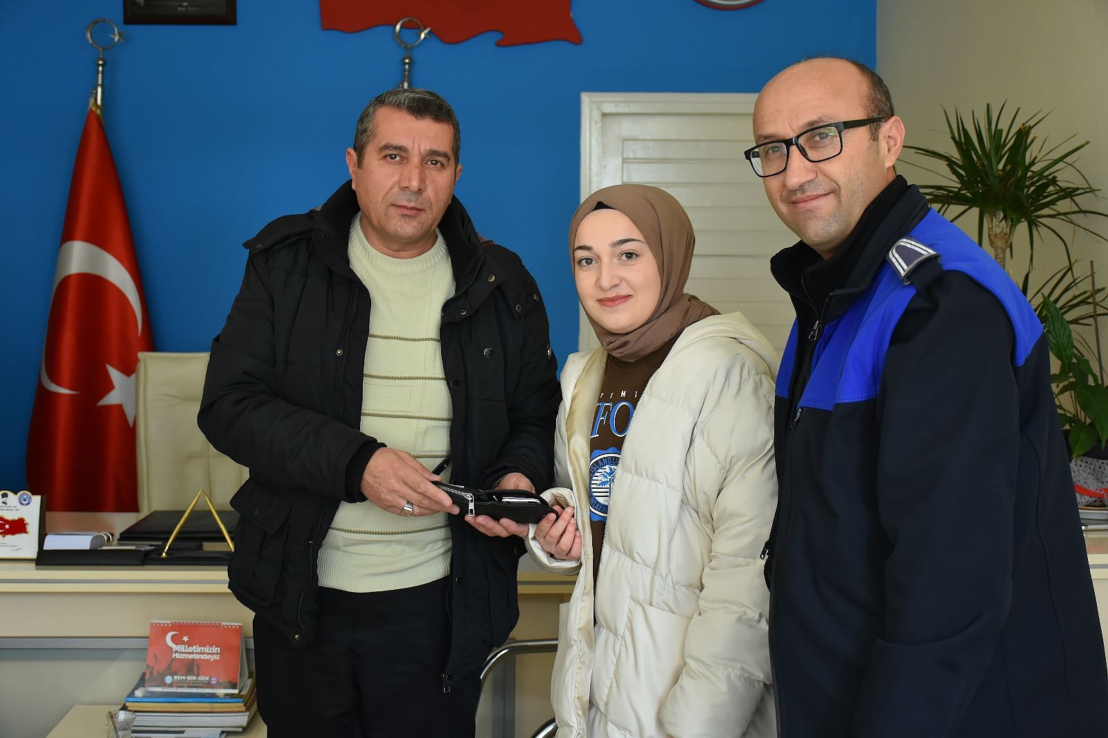 Belediye Zabıta ekipleri cüzdan sahibini tespit ettiler. Duyarlı vatandaş İsmet İpek bulduğu cüzdanı Belediye Zabıta Müdürlüğünde sahibi Medine Tatlısu 'ya teslim etti.