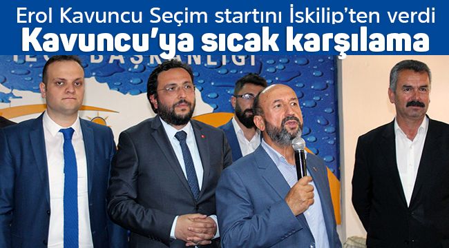 24 Haziran’da yapılacak Cumhurbaşkanlığı ve milletvekilliği genel seçimlerinde Ak Parti’nin Çorum sıralamasında 3. Sırada yer alan Erol Kavuncu seçim çalışmalarını İskilip’te başlattı. Beraberindeki heyetle birlikte İskilip’e gelen Erol Kavuncu Ak Parti İskilip İlçe Başkanlığında partililere hitap etti. Kavuncu burada yaptığı konuşmada seçim çalışmasını İskilip’ten başlattığını açıkladı. Kavuncu “ Çorum ve bütün ilçelerimiz bizim için önemlidir. Ama biz kendi yaşadığımız bölge olarak İskilip, Bayat, Uğurludağ ve Oğuzlar bölgesinde çalışmalarımızı başlatıyoruz. İskilip’in ve diğer ilçelerimizin siyaseten giderilebilecek bütün sorunlarını biliyorum. Sizlerin hizmetkarı olarak var gücümle çalışıp sorunlarımızın çözümü için elimden geleni yapacağım” diye konuştu.