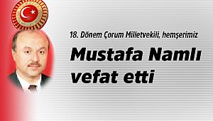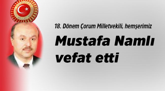 18.dönem ANAP Çorum milletvekili Mustafa Namlı 73 yaşında Ankara'da vefat etti. Cenazesi Pazar günü İskilip'te Hacıkarani mezarlığına defnedilecek. Mustafa Namlı 1987 -1991 yılları arasında TBMM'de 18.dönem Çorum milletvekili olarak bulundu.
