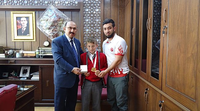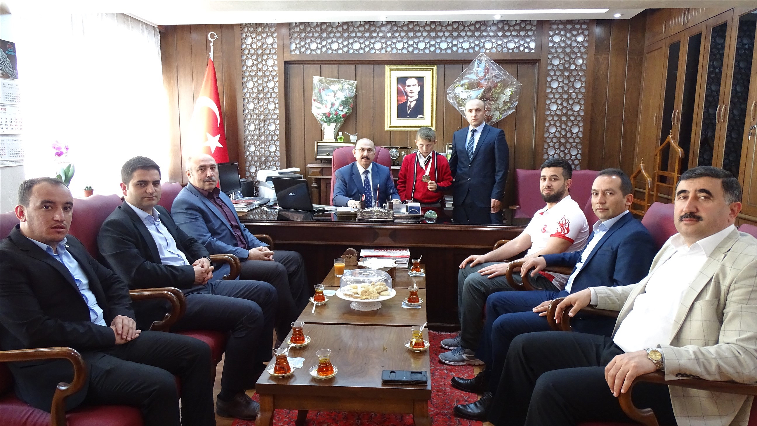 Türkiye Şampiyonu İskilip Erenler Cumhuriyet Ortaokulu Öğrencisi Ferhat YİĞİT , Erenler Cumhuriyet Ortaokulu Müdürü Süleyman GÖKOĞLU, Atıf-Der Başkanı Erdal BIYIK, Ak Parti Gençlik Kolları yönetimi adına Sadık ÜSTÜN ve İskilip Şehit Habib Gökçe Güreş Eğitim Merkezi Güreş Antrenörü Adem UYSAL ile birlikte İskilip İlçe Milli Eğitim Müdürü Süleyman ATCIOĞLU’na tebrik ve teşekkür ziyaretinde bulundular. Kabulde Şube Müdürleri hazır bulundular.