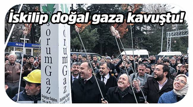ÇorumGaz tarafından İskilip’e bugün düzenlenen törenle doğalgaz verildi. Alaca ve Osmancık’tan sonra İskilip te doğalgaza kavuştu. İskilip'te Emek taksi meydanında düzenlenen törene Vali Necmeddin Kılıç, AK Parti Çorum Milletvekili Ahmet Sami Ceylan, Belediye Başkan Yardımcısı Ahmet Yabacıoğlu, AK Parti İl Başkanı Mehmet Karadağ, Çorumgaz yöneticileri, ilçe yetkilileri ile vatandaşlar katıldı.