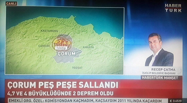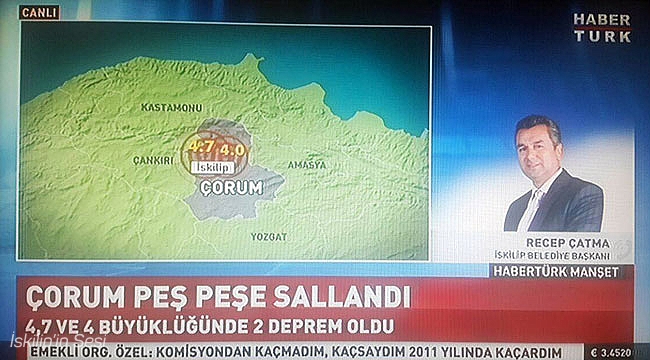 İskilip 4,7 büyüklüğündeki deprem ile gündeme geldi. Deprem nedeniyle vatandaşlar ev ve işyerlerini terketti. Yaygın basın kuruluşları deprem neddeniyle ilgisini İskilip'e yöneltti. Habertürk televizyonu haber bülteninde İskilip Belediye Başkanı Recep Çatma'yı telefonla canlı yayına bağlayarak depremle ilgili bilgi verdi.