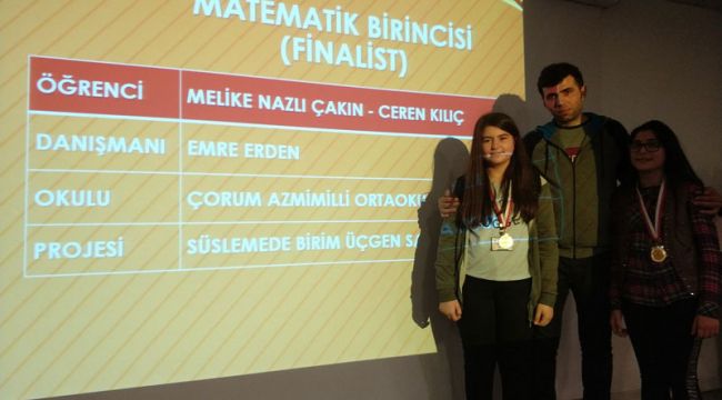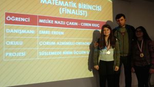 29 Mart tarihinde gerçekleşen ödül töreninde ise farklı branşların birincileri büyük bir heyecanla açıklandı. Matematik branşında, Danışman Öğretmen Emre ERDEN rehberliğinde hazırlanan “Süslemede Birim Üçgen Sayısı” projesi ile Melike Nazlı Çakın ve Ceren Kılıç isimli öğrenciler birinci seçilerek 7 Mayıs tarihinde Kayseri’de gerçekleşecek Türkiye Finallerine katılmayı hak kazandılar.