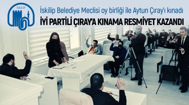 İYİ Parti İzmir Milletvekili ve Meral Akşener'in başdanışmanı Aytun Çıray’ın İskilip hakkında yayınladığı twiti, Belediye Meclisince kınandı.Belediye Meclisi kınama kararı oy birliği ile kabul etti.