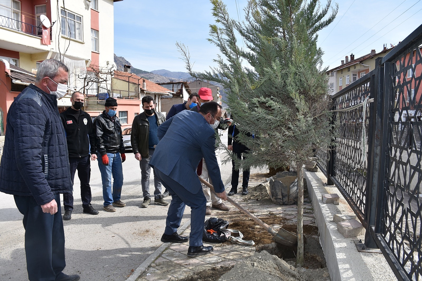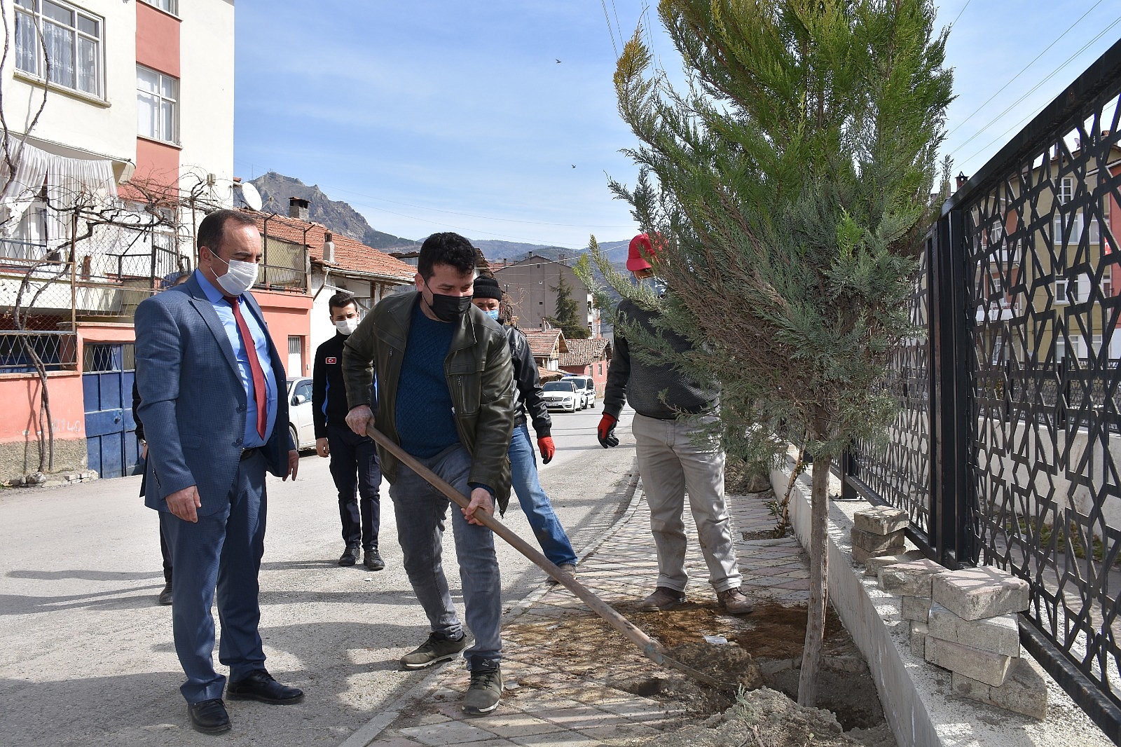 İlk fidanı Başkan Ali Sülük ve Belediye Meclis Üyesi Murat Kiraz toprakla buluşturdu. Aynı zamanda Ziraat Mühendisi olan Başkan Ali Sülük “ Fidanı dikim aşamasında yapılması gerekenleri” Park ve Bahçeler biriminde çalışan işçilere de anlattı.