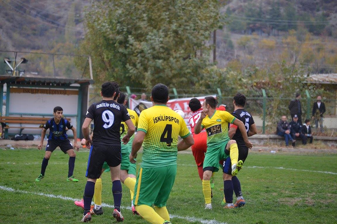 İlçemizi 1. Amatör Küme'de temsil eden iki takımımızın maçında gülen taraf etkili oyunu ile İskilipspor oldu. Garnizon Komutanı Çetin Öcal ve Belediye Başkanı Recep Çatma'nın da takip ettiği müsabaka 85 dakika boyunca 10 kişi oynayan İskilipSpor'un 2-1 lik üstünlüğü ile sonuçlandı. Karşılaşmanın henüz 10. dk'sında kaleci ile karşı karşıya kalan iskilipgücü oyuncusu Uğurcan'ı kaleci Hakan Duran'ın düşürmesi sonucu hakem penaltı noktasına giderken Hakan ise kırmızı kart ile oyun dışında kaldı. Kazanılan penaltıyı Uğurcan gole çevirdi ve İskilipgücü öne geçti.1-0 Oyuna çok iyi başlayan İskilipSpor'un yediği kırmızı kart ve penaltı golüyle oyundan düşmesi beklenirken tam tersine oyun disiplinine hakim bir oyun çıkarması sonucun habercisi gibiydi. 22. dk. da soldan aldığı top ile atağa çıkan Murat Kayılı'nın mükemmel arapasında topla buluşan Sefa şık bir vuruşla golü kaydetti ve İskilipSpor rakibi karşısında beraberliği yakaladı. 1-1 35. dk. da bu sefer sağdan gelişen atakta Yusuf'un ortasında topla buluşan Murat Kayılı ceza yayı üzerinden düzgün bir vuruşla İskilipgücü kalecisi Mustafa'yı caresiz bıraktı. 1-2 Ilk yarı bu sonuçla biterken ikinci yarıda karşılıklı ataklar sonucu başka gol olmayınca zorlu müsabaka İskilipSpor'un 2-1 lik üstünlüğü ile sonuçlandı. İki takımımıza da bundan sonraki maçlarında başarılar dileriz.