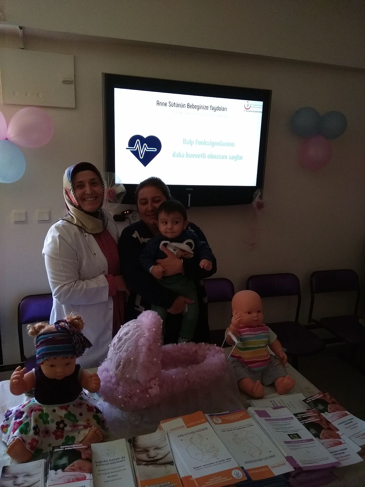 Hastane içerisinde bulunan poliklinik bölümünde stant açarak lohusa ve anne adaylarına anne sütünün bebeğe ve anneye olan faydaları hakkında sözel bilgilendirme eğitimlerinin yanı sıra afiş ve broşürlerle eğitime destek sağlandı.