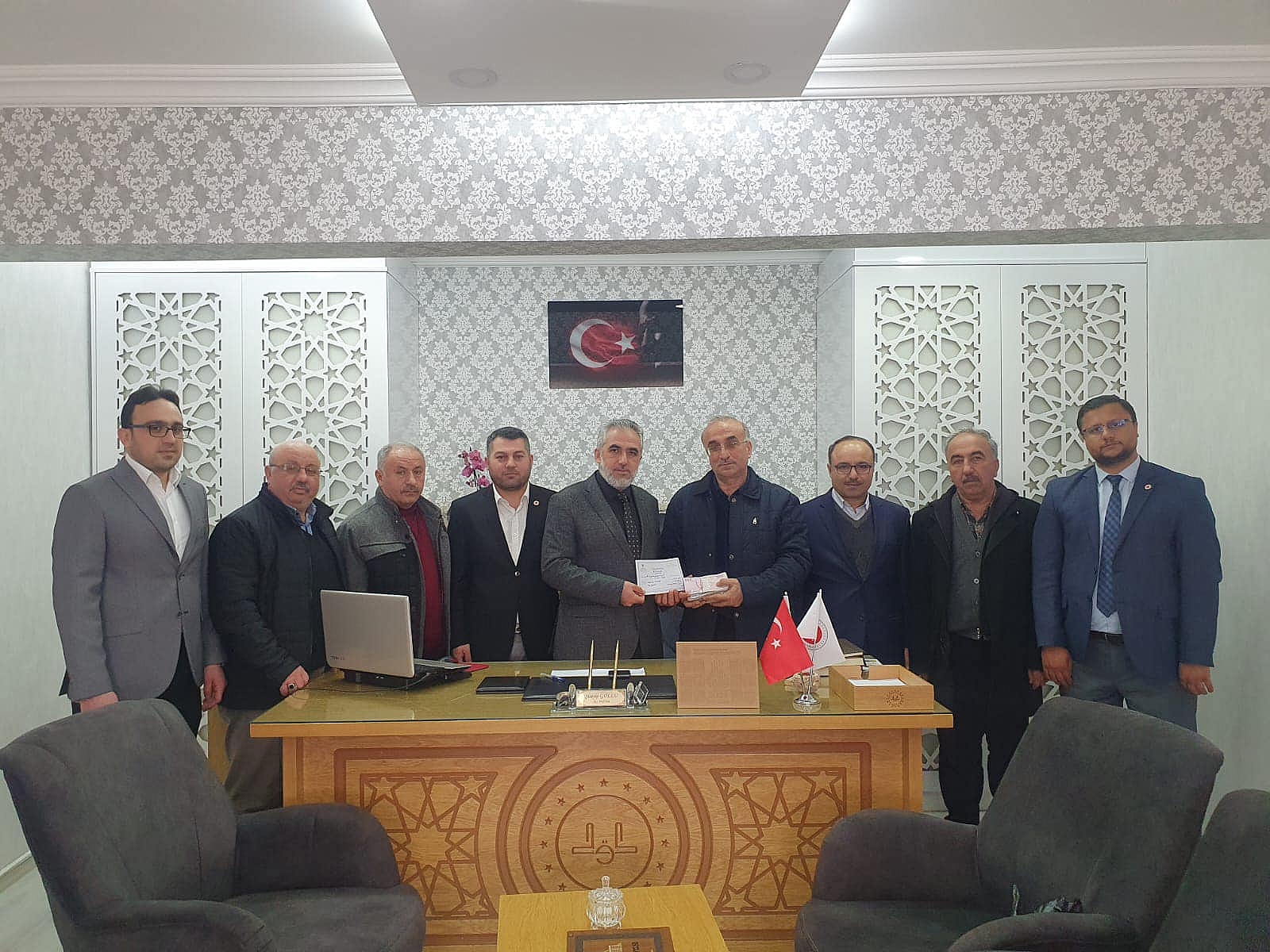 Din görevlileri topladıkları 100.000₺ yardımı deprem bölgelerine gönderilmek üzere İskilip Müftüsü Şuayip Güllü'ye teslim ettiler.