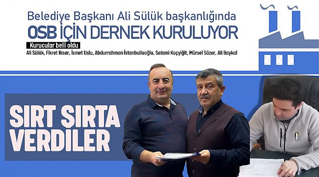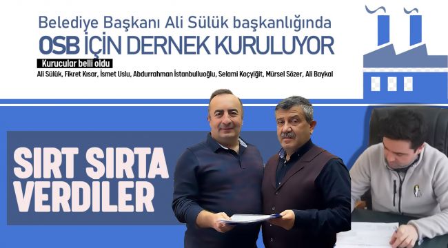 Belediye Başkanı Ali Sülük ve Kaymakam Yunus Emre Vural’ın destekleriyle Organize Sanayi Bölgesi (OSB) kurulması hakkında ciddi adımlar atılmaya başlandı. İlk olarak, Bakanlıkça formatı belirtilen kuruluş protokolü gereğince; İlçemizin önde gelen isimlerinden; Ali SÜLÜK, Fikret KISAR, Abdurrahman İSTANBULLUOĞLU, İsmet USLU, Selami KOÇYİĞİT, Mürsel SÖZER, Ali BAYKAL tarafından Kurucular Kurulu oluşturuldu.