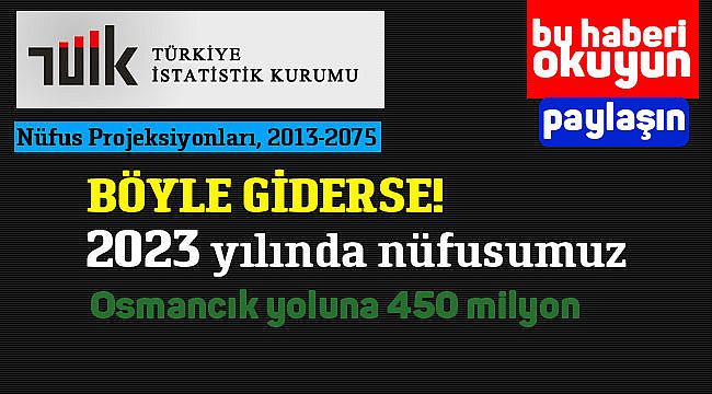 TÜİK tarafından yayınlanan Nüfus Projeksiyonları, 2013-2075 verilerine göre;
