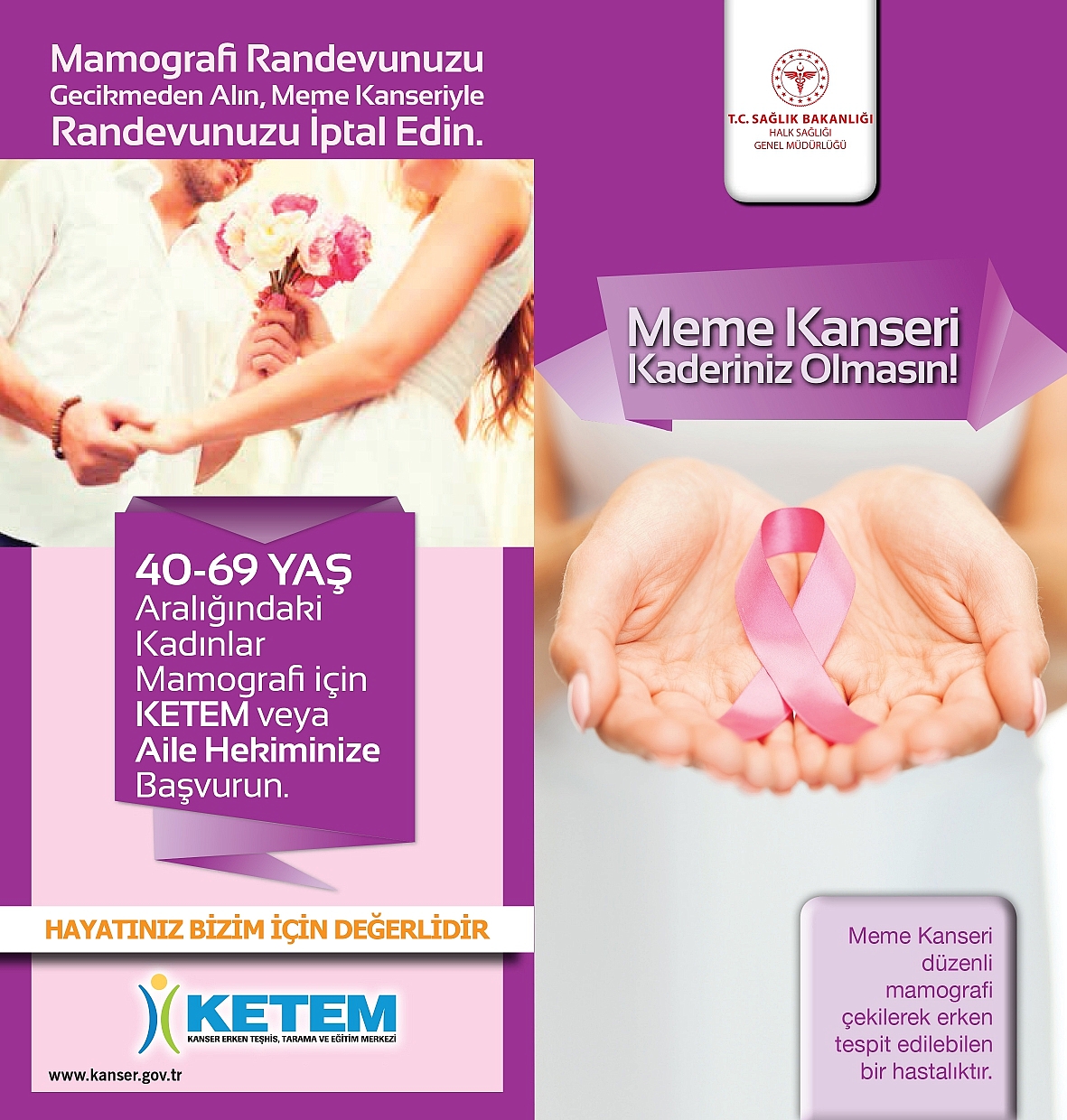 İskilip İlçe Sağlık Müdürlüğü olarak, kadınlarımızı meme kanseri hakkında bilgilenmek, kendi kendine meme muayenesi öğrenmek, uygun yaş grubunda olanların taramalarını yaptırmaları için İlçe Sağlık Müdürlüğü Kanser Birimi ve Aile Hekimlerinize başvurabilir, danışmanlık hizmeti alabilirsiniz.