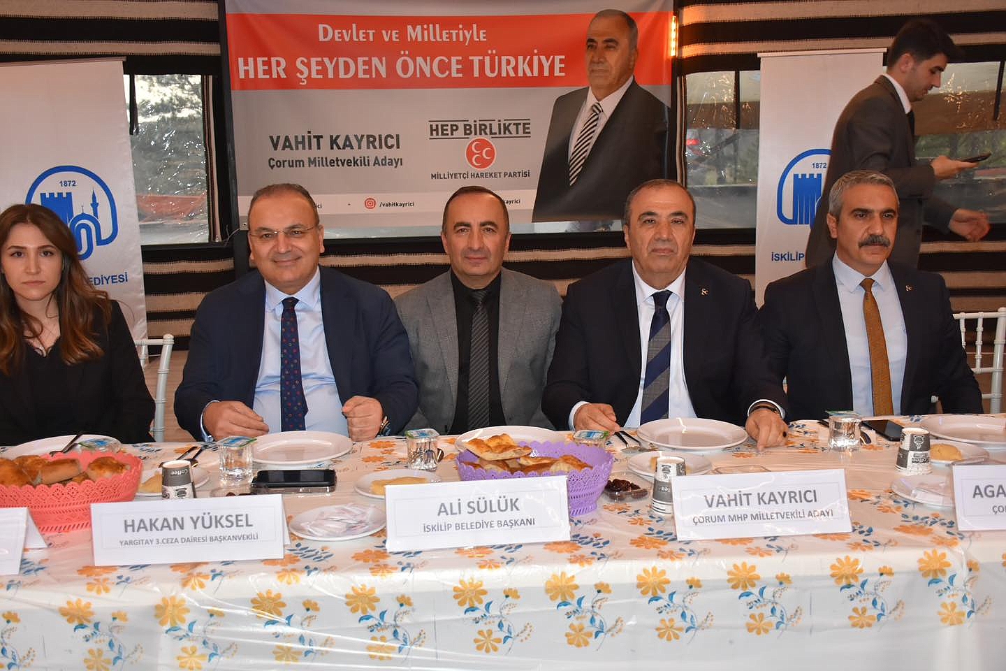 İftar programında konuşan Milliyetçi Hareket Partisi Çorum birinci sıra milletvekili adayı Vahit Kayrıcı İskilip’in çözüm bekleyen sorunlarını bildiğini, başta İskilip-Tosya Yolu, Yüksekokul, Organize Sanayi bölgesi olmak üzere tüm ihtiyaçların karşılanması için gereken çalışmaları yapacağını beyan etti.