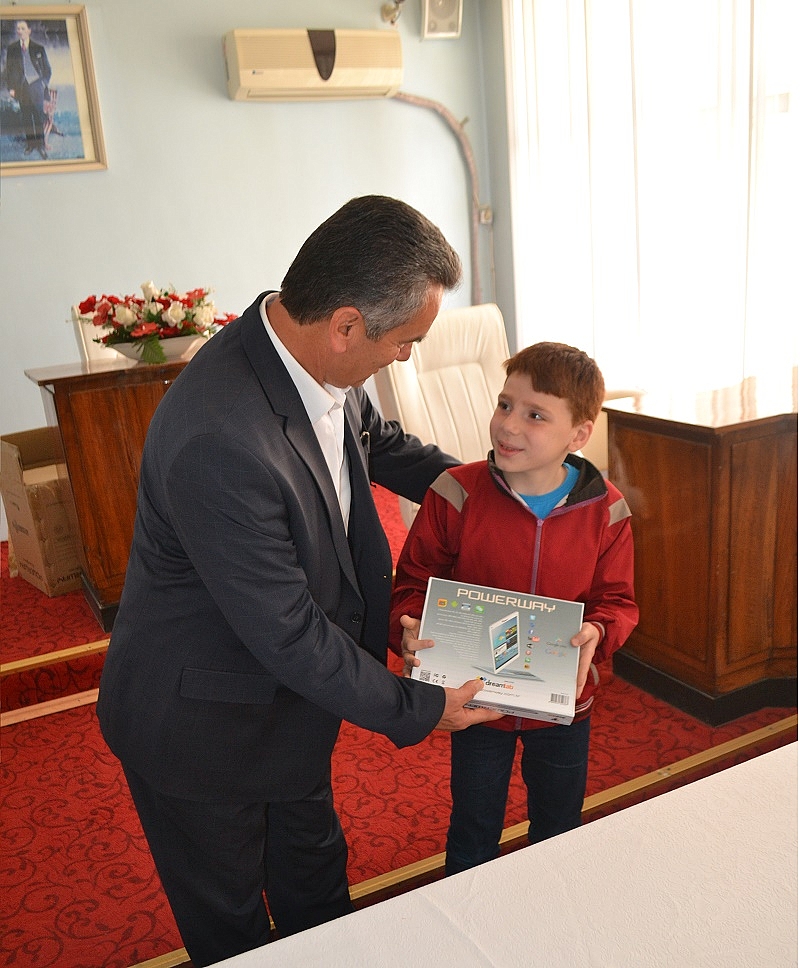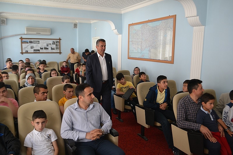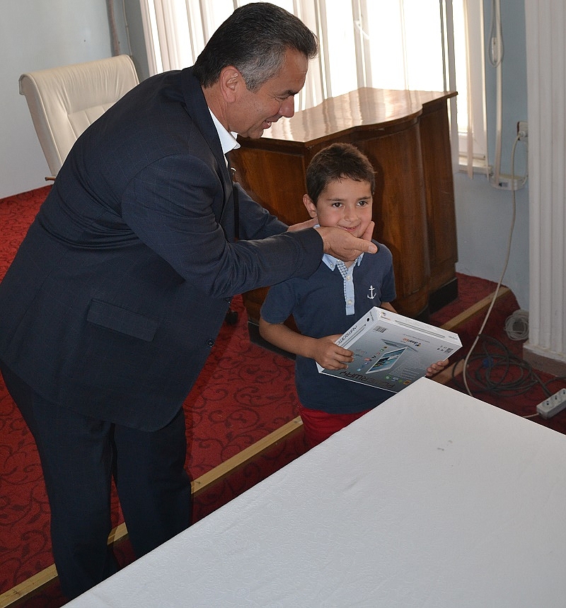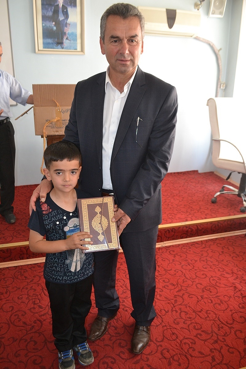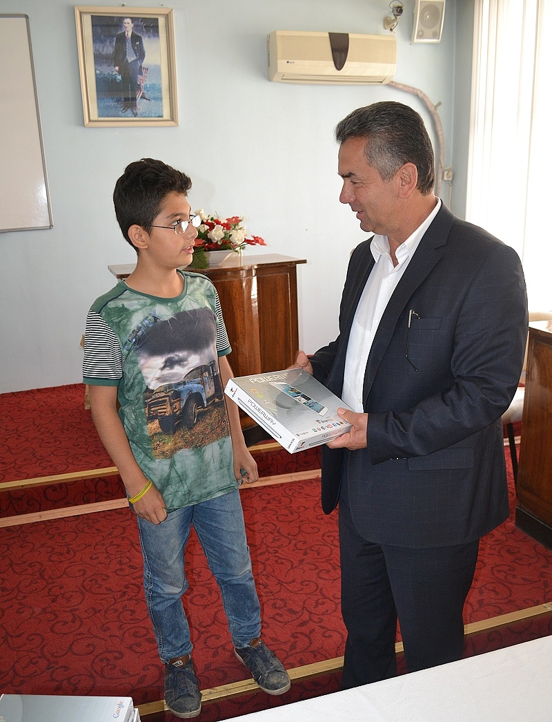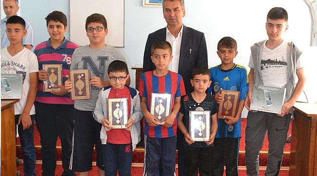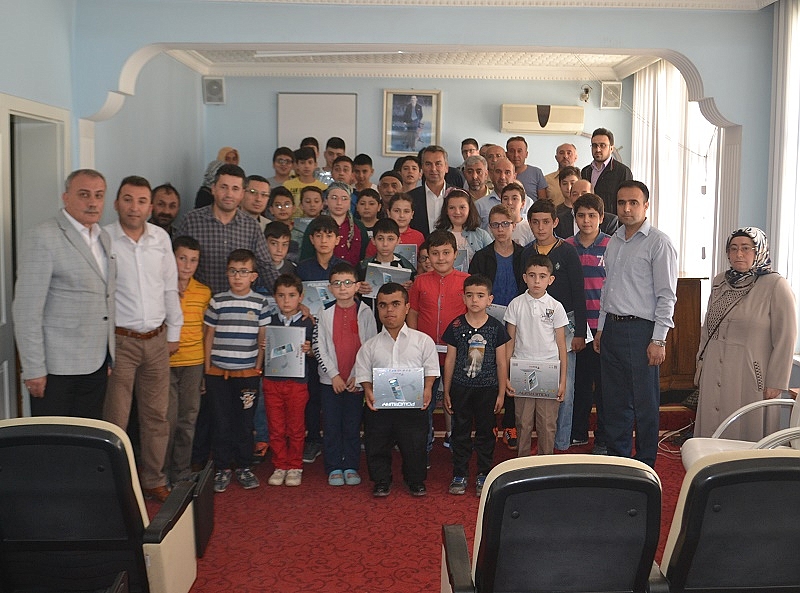 Camilerin İmam Hatipleri gözetiminde 10 gün süren yarışma boyunca camide cemaatle 40 vakit namazı tamamlayan öğrencilere Belediye Meclis Salonunda düzenlenen törenle Başkan Çatma tarafından 47 adet tablet bilgisayar hediye edildi.