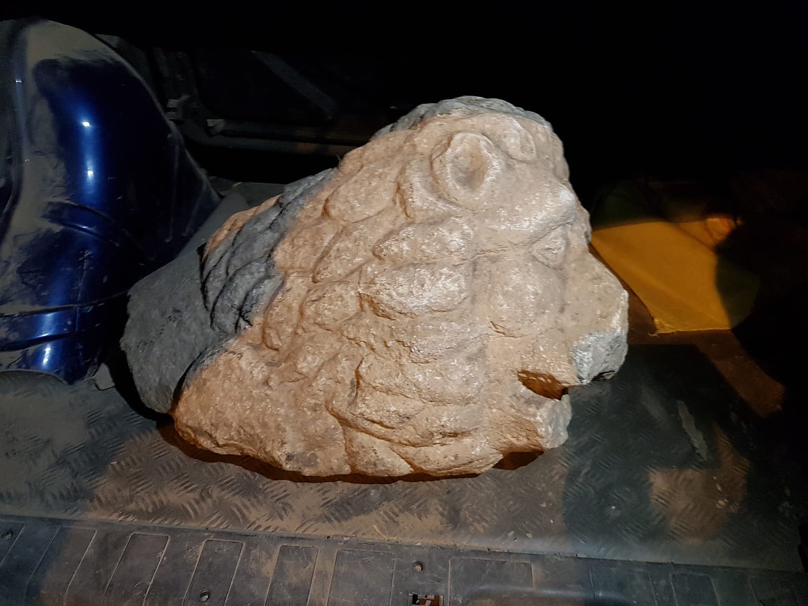 E.Y. ve E.Ü. isimli şahısların Roma Dönemine ait olduğu belirtilen aslan başlı figürü kaçırmak ıstedikleri ancak jandarma ekipleri titiz çalışma ile ilçeden çıkarılmadan el koyuldu .Şahıslar gözaltına alındı ve adli işlemlerine devam edilerek soruşturmanın genişletildiği bilgisi alındı.