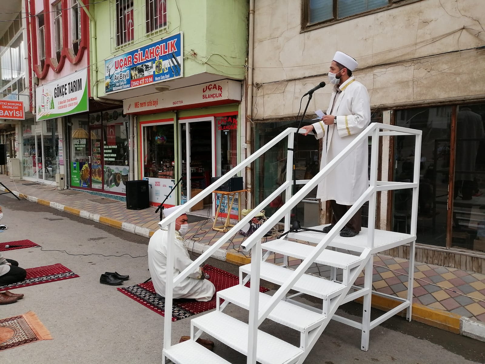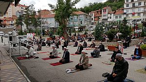 Koronavirüs nedeniyle yaklaşık iki aydır kılınamayan Cuma namazı bugün yasakların gevşetilmesi ile birlikte İlçe Müftülüğünün belirlediği camilerin avlularında ve okul bahçelerinde kılındı.