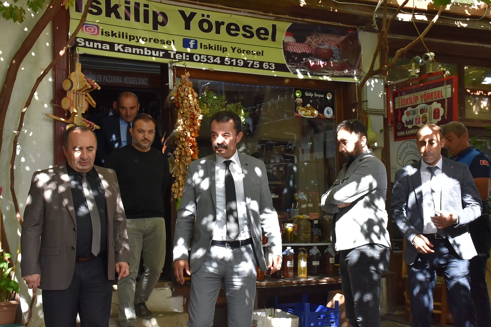 “Tarım Kredi Kooperatifi Birlik Genel Müdür Yardımcısı hemşerimiz Tuğrul Arslan, Hammadde Satınalma Müdürü Yahya Aksu, Kalite Müdürü H.İbrahim Türkmen, Üretim Müdürü Ahmet Kılınç ve Kaymakamımız Yunus Emre Vural ile birlikte İskilip Turşusunun Tarım Kredi marketlerde satılması için tesisin yeterliliği ve gereksinimlerinin tespiti bununla beraber İskilip çevresinde turşuluk hammadde yetiştiriciliğinin artırılması, İskilip çileğinin kurutulmuş olarak değerlendirilmesi, kuşburnu ve Kadın Kooperatifinin yaptığı ürünlerin yine Tarım Kredi Marketlerde satışının planlanması, bu kapsamda görüşmeler yapılarak kısa vadede hayata geçirilmesi, yapılacak çalışmalar ile ilgili görüş ve fikir alışverişinde bulunduk."