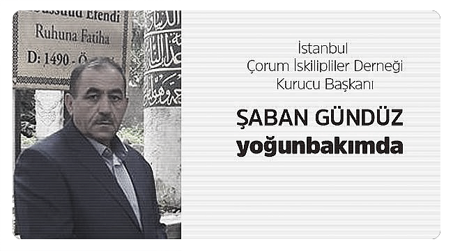 İskilip ve köyleri derneği kurucu başkanı Şaban Gündüz akşam saatlerinde rahatsızlanarak hastaneye kaldırıldı. Beşyüzevler Şafak Özel hastanesinde tedavi altına alınan Şaban Gündüz'ün beyin kanaması geçirdiği belirlendi. Yoğun bakım ünitesinde tedavisi süren Şaban Gündüz'ün durumu ciddiyetini koruyor. Şaban Gündüz'e Allah'tan acilşifalar dleriz.
