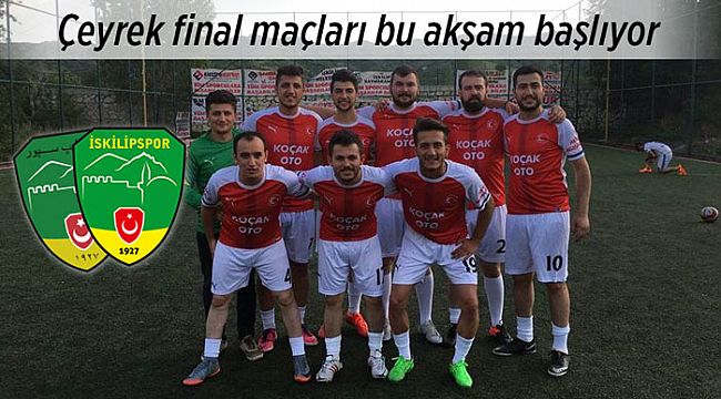 İskilipspor kulübünün kuruluşunun 90.yıl anısına düzenlenen halı saha turnuvasında çeyrek final heyecanı bu akşam 18.30'da başlıyor. Çeyrek finale kalan 4 takımdan Koçak Oto ile Cezaevi bu akşam saat 18,30'da, OF Spor - Kahta Çiğ köfte ise 19.30'da karşılaşacak. Yarı final maçları 20 temmuz perşembe günü kura sonucuyla belirlenecek