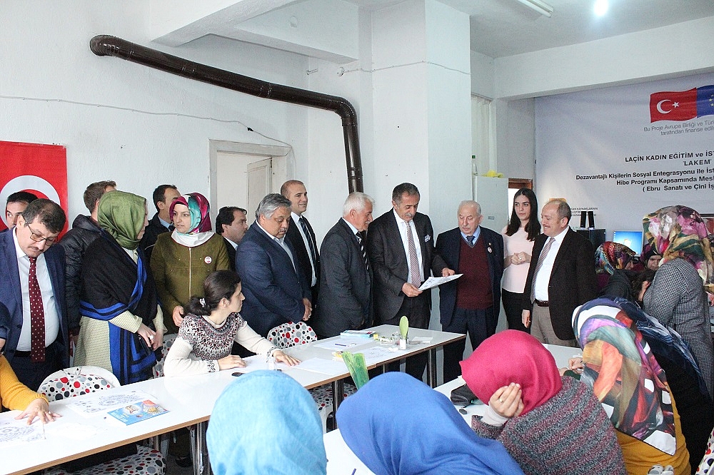 Kafkas ve Kavuştu ile beraberindeki parti yöneticileri ilk olarak Laçin’i ziyaret etti. Laçin HEM Müdürü Bekir Özdemir, ‘Laçin’de Fırsat Var’ projesi kapsamında kadınlara yönelik açılan kurslar hakkında bilgi verdi. Özdemir, kadınların organik yumurta üretimi yapmaları için 11 adet kümese ihtiyaç duyulduğunu belirtti. AK Parti İl Başkanı Av. Mehmet Karadağ, Laçin’in projelerine destek sözü verdi, Cumhurbaşkanı Recep Tayip Erdoğan’ın mitingine ilçeden yoğun katılım beklediklerini söyledi.