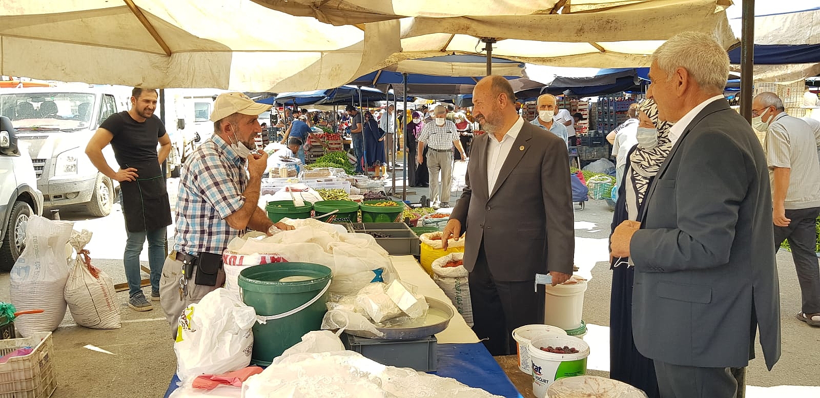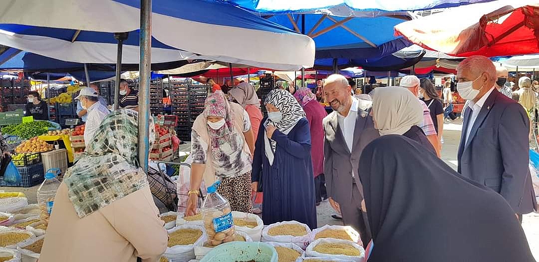 Maalesef son yıllarda dünyada meydana gelen küresel iklim değişiklikleri, kuraklık nedeniyle kıraç ama sulanabilir arazilerin mevcut akarsu kaynaklarıyla sulanarak ekonomiye kazandırılması büyük önem arz etmektedir. Bu gerçeklikten hareketle, AK Partimizin ilimizde gerçekleştirdiği yatırımlarla ilimize kazandırılan baraj, gölet, sulama kanallarıyla sulanabilir arazilerimiz arttı, bundan sonra da yatırımlarımız devam edecek ve hamdolsun münbit topraklarımızda yetişen ürünlerimiz çeşitlenip bereketlendi. Bu bereketi hanelerine taşımak için alışverişlerini yapan hemşehrilerimizi, pazarcı esnafımızı, ve sonrasında ekmek tekneleri dükkânlarda, çay ocaklarında, caddelerde görüştüğümüz hemşerilerimizle hal hatır sual edip hasbihal ettik. Taleplerini, beklentilerini, memnuniyetlerini ilkelden, kendilerinde dinleyip notlarımızı aldık, takipçisi olacağız.