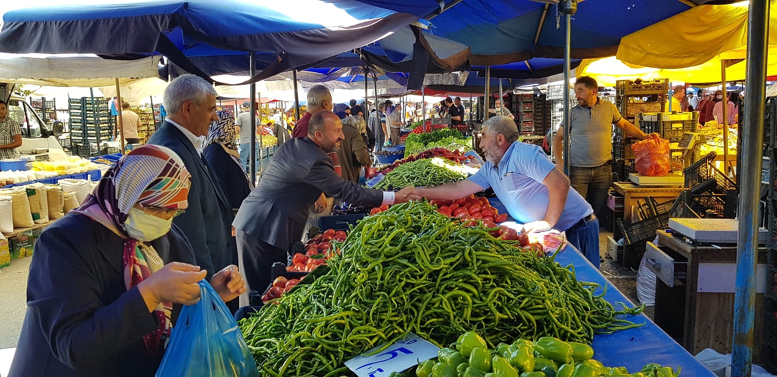 Sevgili Peygamberimizin; "Hiçbir kimse, asla kendi kendi elinin emeğinden daha hayırlı bir rızık yememiştir. Allah'ın nebisi Dâvûd -aleyhisselam- da kendi elinin emeğini yerdi" emri mucibince, alın terlerini akıtarak, ellerinin değdiği her şeyi bereketlendiren cefakar, vefakar çitçi, üretici ve pazarcı esnafı kardeşlerimize ve huzur içerisinde alışverişlerini yapan hemşehrilerimize hayırlı bol bereketli alışveriş dileklerimizi ilettik.