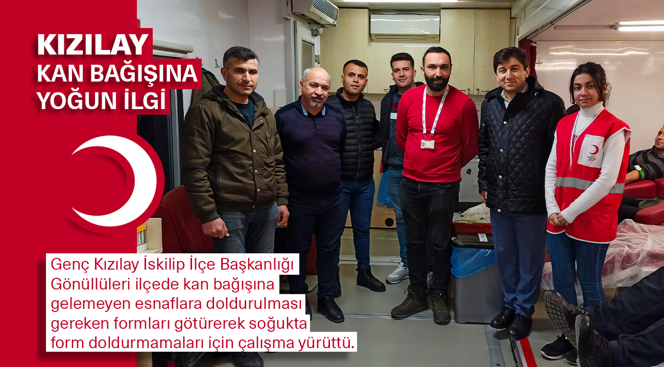 Kan Bağışında, Hitit Üniversitesi İskilip Meslek Yüksekokulu Genç Kızılay Gönülleri, Paramedik Bölümü Öğrencileri, İbni Sina Sağlık Meslek Lisesi Öğrencileri ayrıca kan bağışı için gelen ilçe halkıyla yakından ilgilenerek formların doldurulması gibi konularda yardımcı oldular.