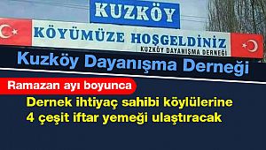 KUZDER Başkanı Şenol Kocak Kuzköy'e ait sosyal medya hesabına yaptığı açıklamada ihtiyaç sahibi köylülerine 4 çeşit iftar yemeği ulaştırılacağını açıkladı. Koçak " Değerli üyelerimiz,köylülerimiz ve hemşehrilerimiz; Bu senede yaşlılarımıza,ihtiyaç sahibi veya yemeğini yapmakta zorlanan köylülerimize 13.04.2021 tarihinden itibaren Ramazan bayramına kadar iftar yemeği vermeye başlayacağız.Belirlenen ailelere iftar saatine yakın 4 çeşit yemek ulaştırılacaktır" ifadelerini kullandı.