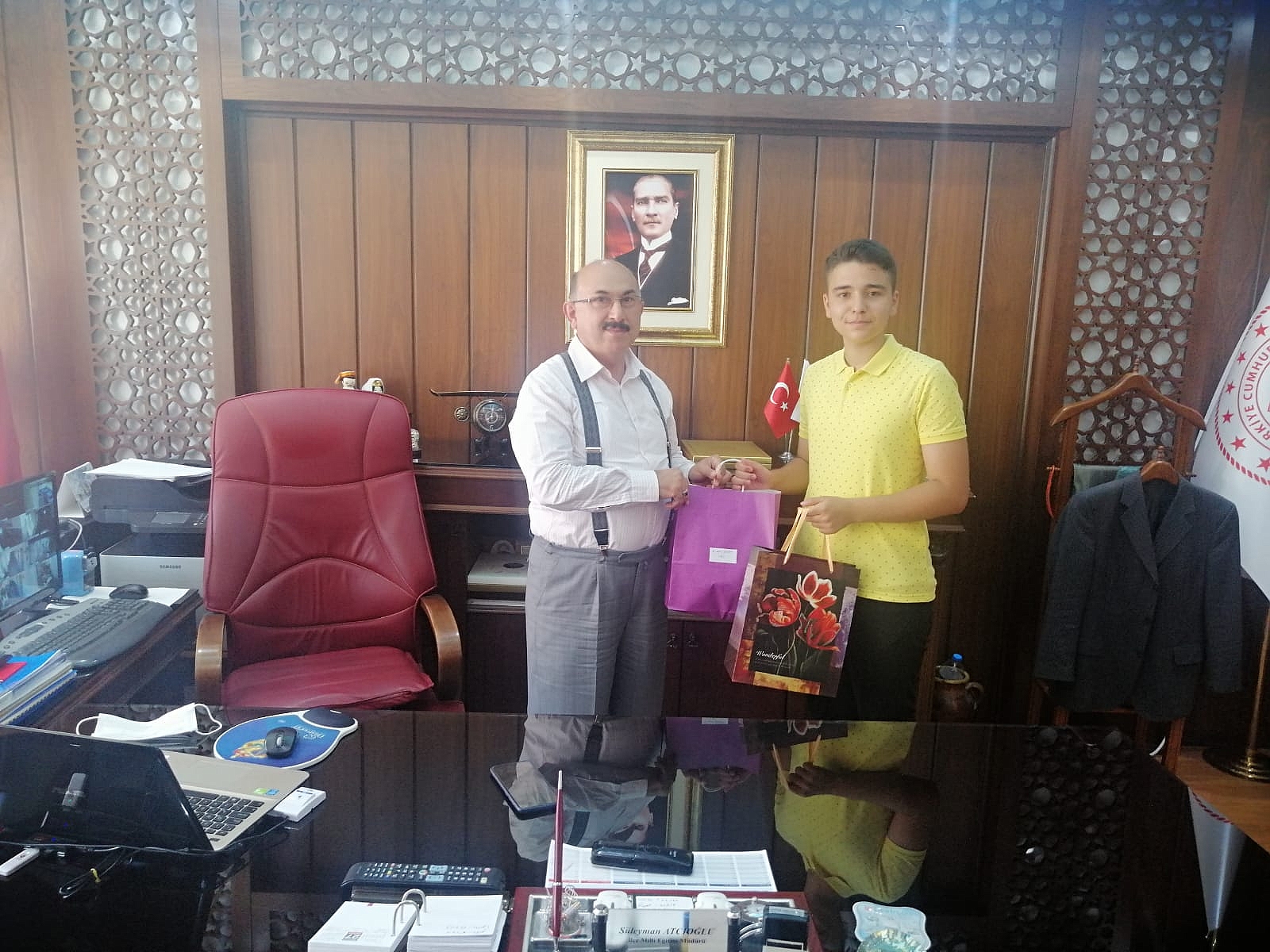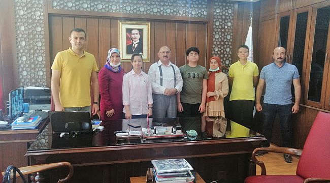 LGS sınavında il üçe giren öğrenciler İskilip Milli Eğitim Müdürü Süleyman Atcıoğlu'nu makamında ziyaret ettiler.