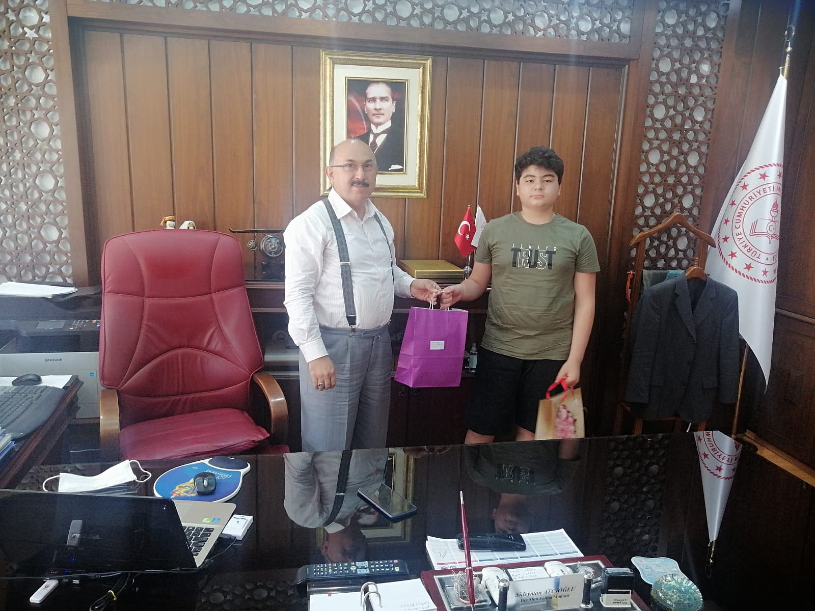 Öğrencileri ve velilerini makamında kabul eden ilçe Milli Eğitim Müdürü Süleyman ATCIOĞLU yaptığı açıklamada : "Öğrencilerimizi, siz değerli velilerimizi ve başarıda büyük katkısı olan Azmimilli Ortaokulu öğretmenlerini yürekten kutluyorum. 2020-2021 eğitim öğretim yılı pandemi gölgesinde çoğunluğu uzaktan eğitimle geçti ancak Milli Eğitim Bakanlığımızın EBA ve EBATV üzerinden, öğretmenlerimizin ise online derslerle, gayretleriyle öğrencilerimizi geliştirmek, öğrenmesini kolaylaştırmak ve sınava hazırlamak için var gücümüzle çalıştık. Şartlar ne olursa olsun başarıyı isteyen varsa imkan vardır. Bu gençler de başarıyı istediler ve elde ettiler. Biz de onlarla gurur duyduk, çok mutlu olduk. Bundan sonraki eğitim hayatlarında başarılarının artarak devam etmesini niyaz ediyorum.” dedi.