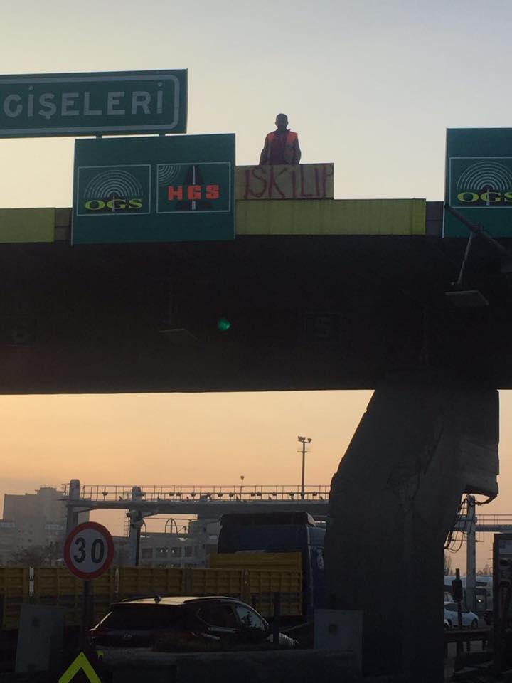 Gişelerde çalışma yapan İskilipli işçiler İskilip tabelası yazıp fotoğraf çektirdiler