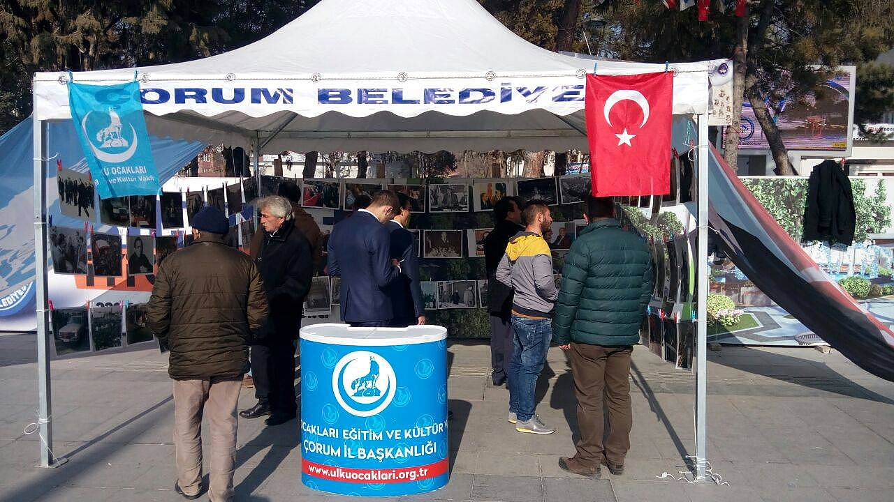 Ülke genelinde Ülkü Ocakları Eğitim ve Kültür Vakfı tarafından eş zamanlı olarak düzenlenen etkinlikte, Çorum Ülkü Ocakları İl Başkanlığı da Çorum Saat Kulesi Meydanında merhum Genel Başkan Alparslan Türkeş'in 99'uncu ad gününü 99 fotoğraf sergisi ile andı. Fotoğraf sergisine Ülkü Ocakları mensupları ve Çorum halkı yoğun ilgi gösterdi.