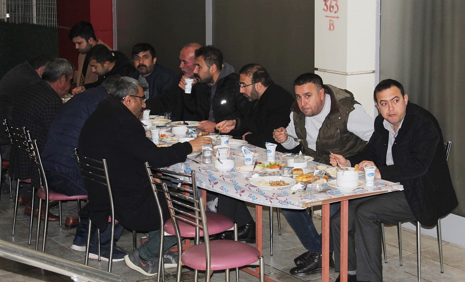 Yaşanan yoğunluk nedeniyle salona sığmayan vatandaşlar için salon dışında da iftar sofrası kuruldu.
