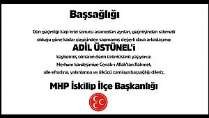 Dün geçirdiği kalp krizi sonucu aramızdan ayrılan, geçmişinden rahmetli olduğu güne kadar çizgisinden sapmamış değerli dava arkadaşımız ADİL ÜSTÜNEL’i kaybetmiş olmanın derin üzüntüsünü yaşıyoruz. Merhum kardeşimize Cenab-ı Allah’tan Rahmet, aile efradına, yakınlarına ve ülkücü camiaya başsağlığı dileriz."