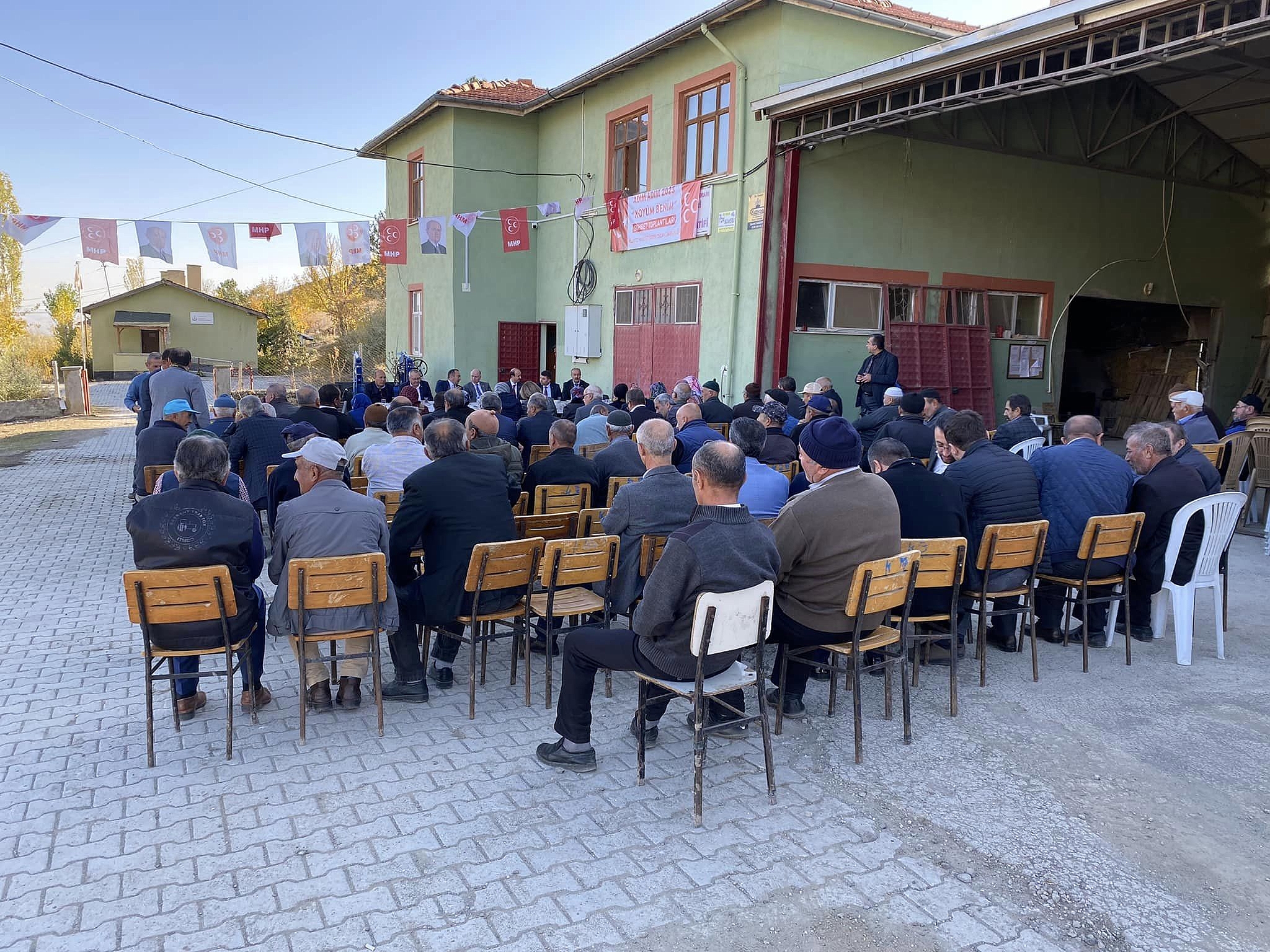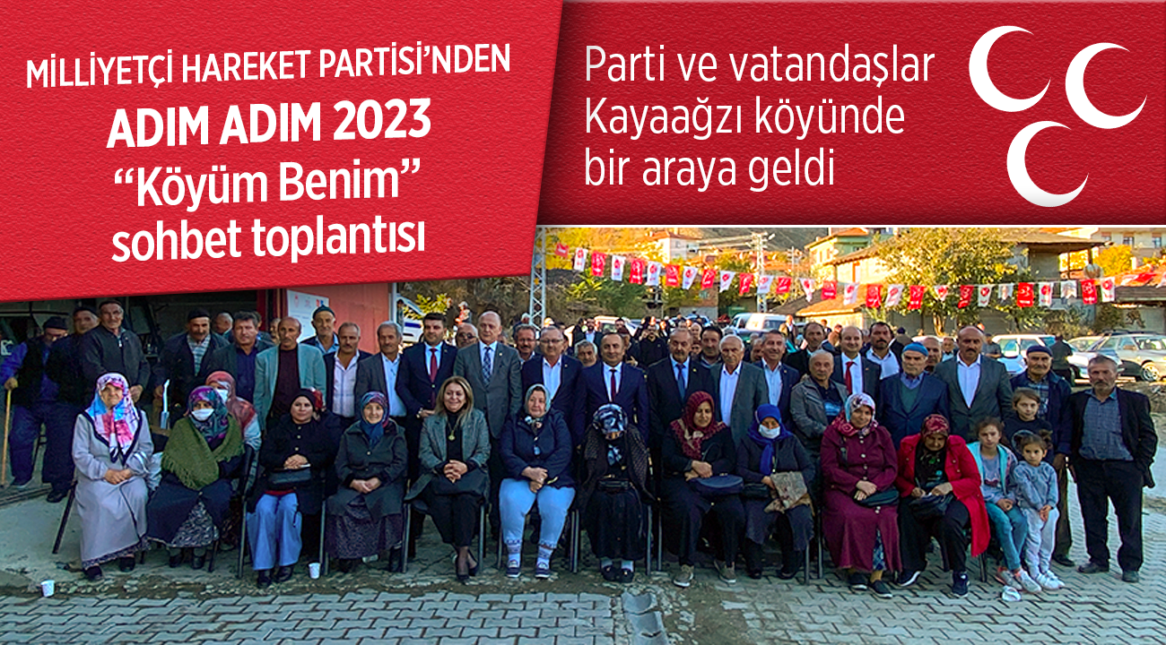 Milliyetçi Hareket Partisi Genel Merkez MYK üyeleri Kürşat Azkur, Hüseyin Ediz, Çorum Merkez İlçe Başkanı Reşit Düzkaya, İskilip İlçe Başkanı Ali Alıcı, Bayat İlçe Başkanı Bekir Güngör, İskilip Belediye Başkanı Ali Sülük, İl Genel Meclis Üyesi Doğan Uçar ve partililer "Adım Adım 2023, Köyüm Benim" sohbet toplantısı kapsamında birçok vatandaş ve bölgenin köy muhtarıyla Kayaağzı köyünde bir araya geldi.
