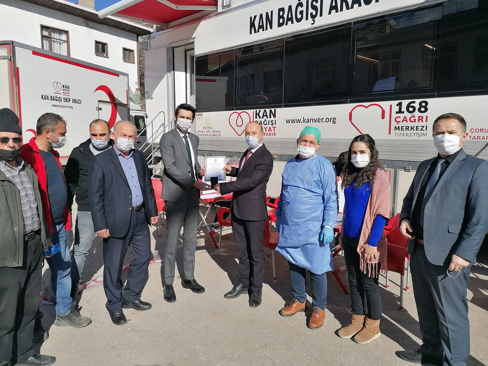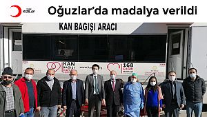 Oğuzlar'da Kızılay tarafından düzenlenen kan bağışında düzenli kan bağışında bulunan gönüllülere bronz madalya verildi.