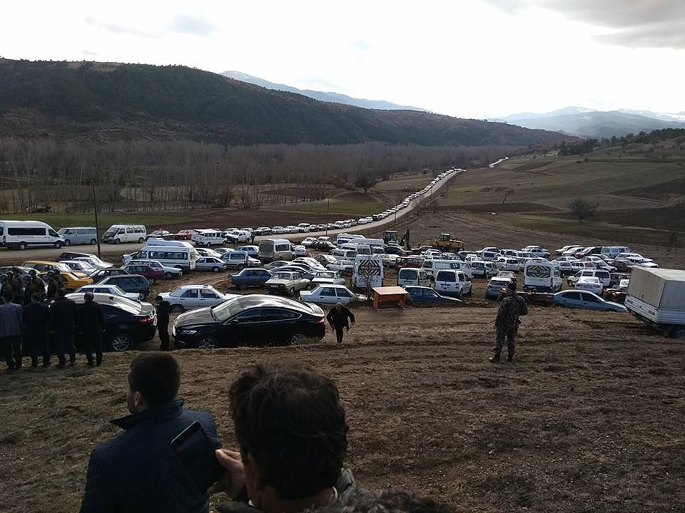 Sabah saatlerinde hastane önünde toplanan yüzlerce vatandaş "Şehitler ölmez vatan bölünmez", "Apo'nun itleri yıldıramaz bizleri", "Bayrağa uzanan eller kırılsın", "İmama uzanan eller kırılsın", "Polise uzanan eller kırılsın", "Askere uzanan eller kırılsın", "Öğretmene uzanan eller kırılsın" sloganları attı.