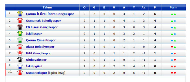 2. hafta oynanan maç sonuçlarına göre puan durumu